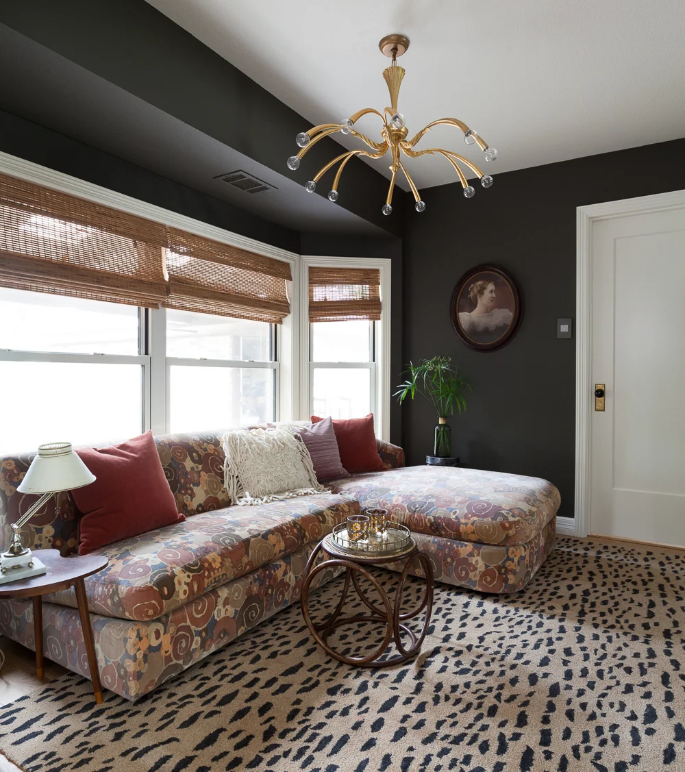 The entire room is perfection, and it’s really all about the curtains. Amber makes a strong architectural statement, but it’s not as aloof or bossy as some of the power shades of past.